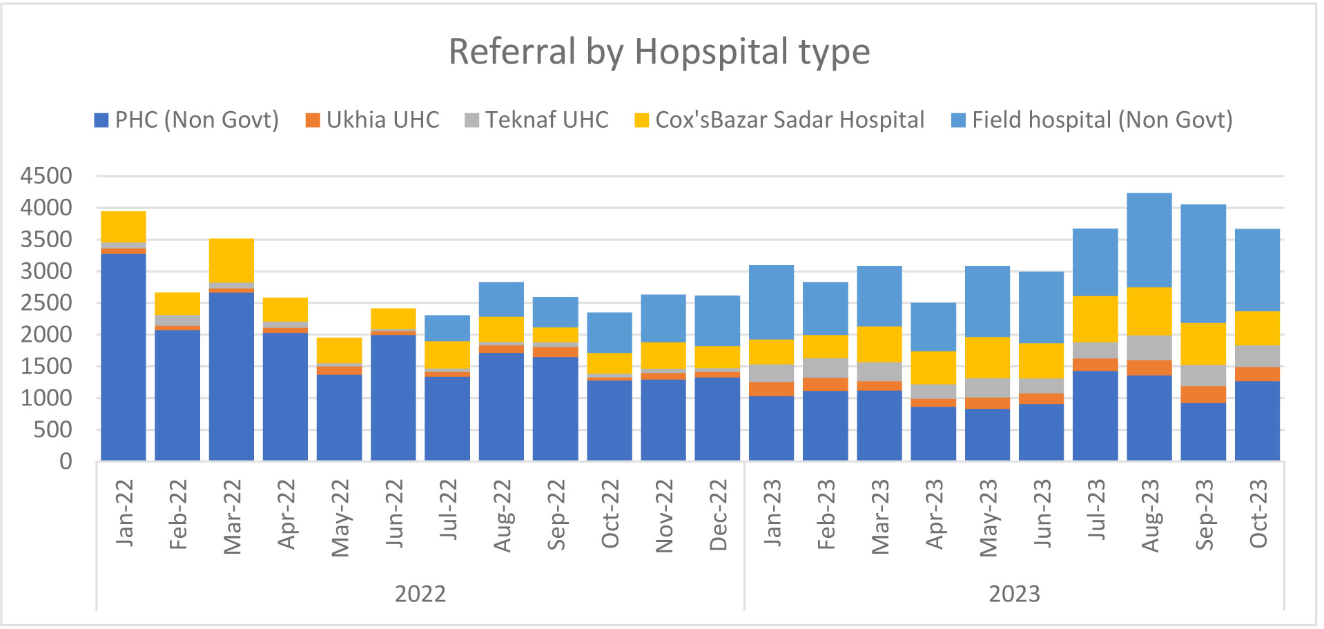 Figure 3: Referral by hospital type. Source: Health Sector 4W Report Jan 2022 to Oct 2023