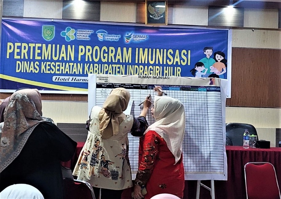 To tackle this pressing issue, the MoH issued directives to healthcare professionals, emphasizing the need to complete immunization for children under five. Recognizing the challenges on the ground, District Health Offices (DHOs) in NTT initiated measures to bolster their health teams. With the support from WHO, districts like Manggarai Timur and Malaka transitioned to updated cohort book formats, making it easier to administer catch-up immunizations. Additionally, an innovative system called "My Village, My Home" (MVMH) for tracking and reaching out to defaulter was introduced in Sampang and Indragiri Hilir Districts. To ensure its effective deployment, skill-building sessions were organized, emphasizing the importance of accurate record-keeping, and identifying children in need of catch-up immunization. Vaccination Technical Officers, as an extension of WHO’s presence in the field, are actively monitoring and evaluating field activities while assisting health worker in Puskesmas as part of on-the-job training.